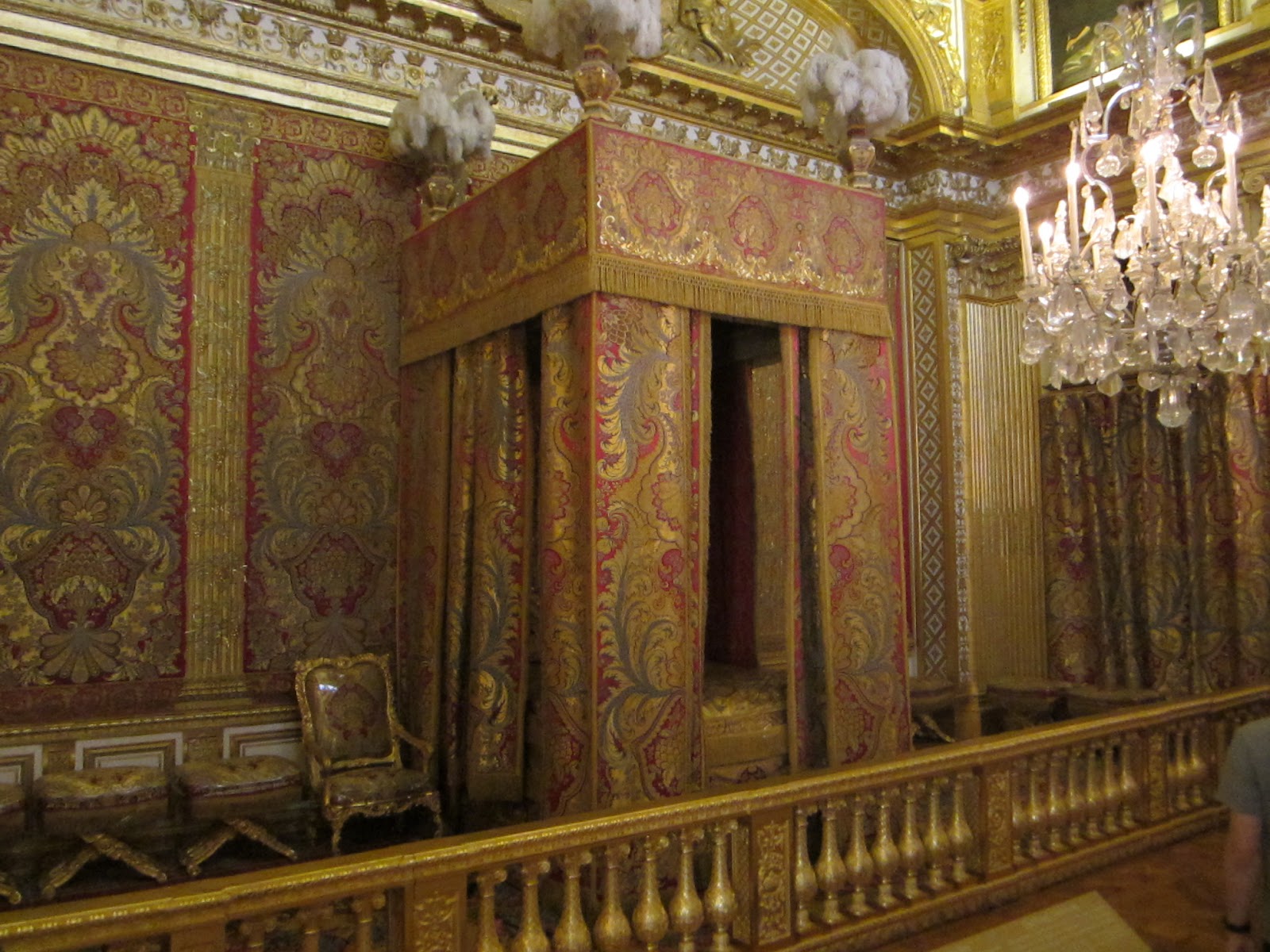 A bed fit for the queen...Mari Antoinette. The walls are not painted, they are tapestries.